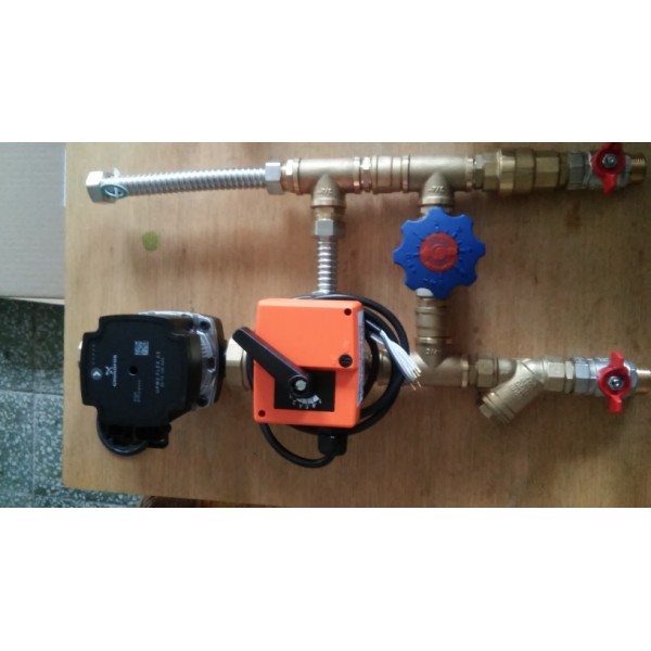 Směšovací uzel musí být upevněn tak, aby hřídel motoru čerpadla byla v horizontální poloze. Po zavodnění systému je nutno odvzdušnit oběhové čerpadlo podle pokynů výrobce (Grundfos). U každého směšovacího uzlu je uvedena požadovaná rychlost čerpadla. Ta se nastavuje otočným plastovým kolečkem na čerpadle při montáži. Při zapojování směšovacího uzlu je nutno zkontrolovat správné nastavení ventilu a servopohonu. U smontovaného směšovacího uzlu lze postavení vnitřního segmentu směšovače rozeznat podle osazení na čele prodloužení hřídelky. Kolmice na plochu osazení u třícestného ventilu ukazuje na osu vnitřního segmentu, u čtyřcestného ventilu kolmice ukazuje na osu vnitřního segmentu.